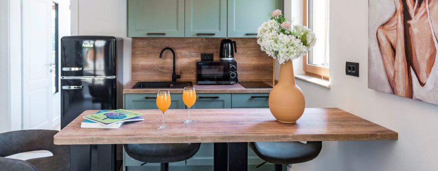 Spacious apartment (90 m2, 6 pax), modern design, stylish bathrooms and a large sea view balcony – an excellent choice for a family vacation. Enjoy your breakfast on the balcony, or soak up sunset colours in the evening holding your favourite drink.